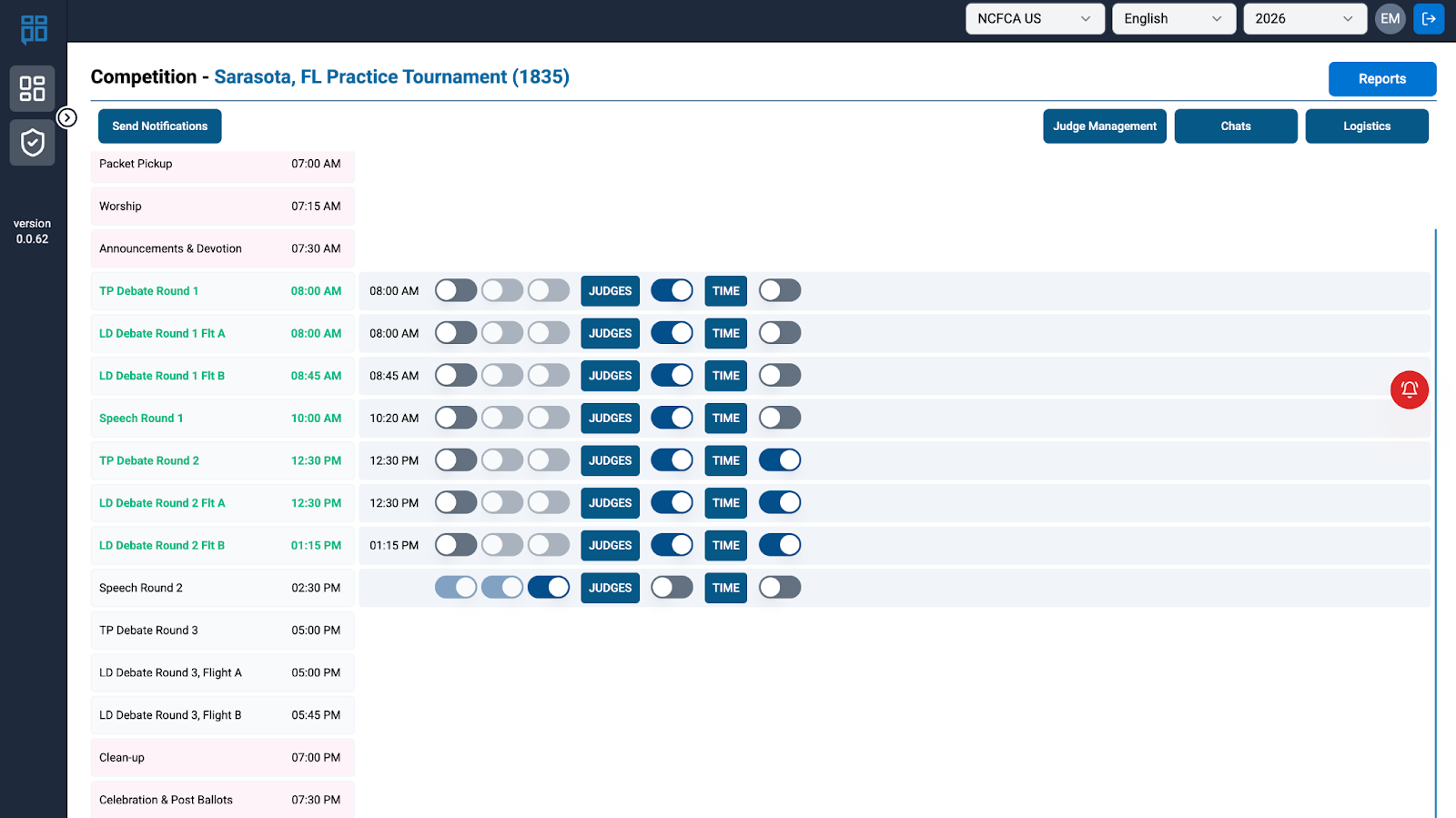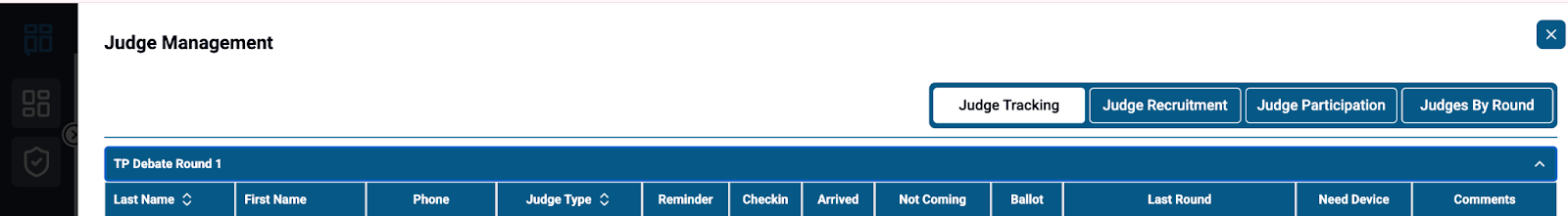 - BM will watch the number of community judges registered for an upcoming round on the Ballot Admin Report to monitor when to pause paneling parent judges. This will ensure there are ballots for community judges when they arrive.