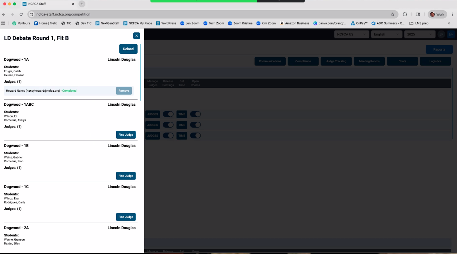 - BAL may need to go to Judge Hospitality to check on Community Judges, help parents get on ballots and be available for any last minute changes needed.